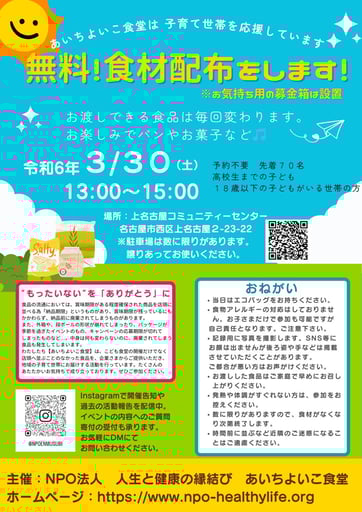 ❤️あいちよいこ食堂の、フードパントリー食材配布とは